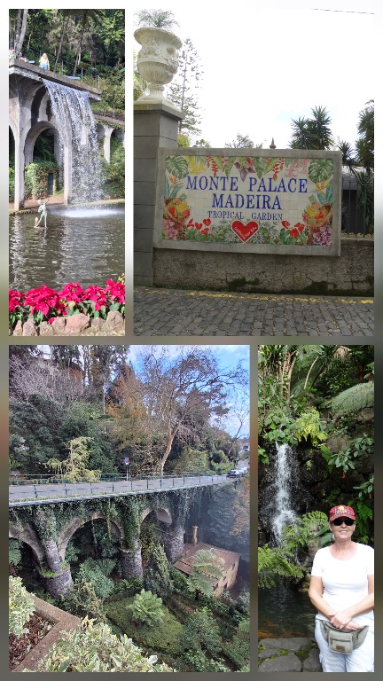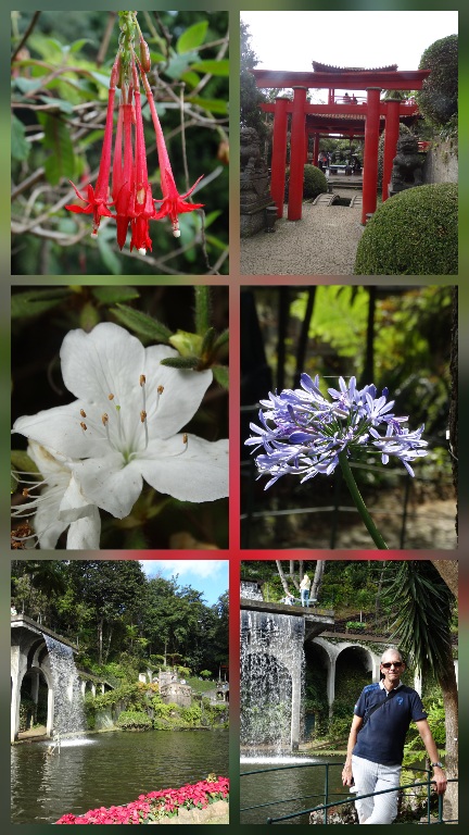 's middags hebben we de blauwe route genomen,de bergen in naar Monte, op 550m hoogte. Hier hebben we de Tropical gardens bezocht. In de 18e eeuw kocht de Britse consul een stuk land voor een paleis met een "tuintje". Dat is uiteindelijk de Tropical garden geworden. Een hele mooie tuin vol tropische planten en kunst.