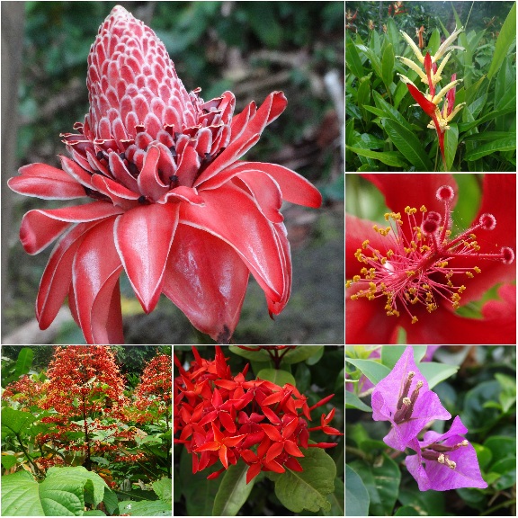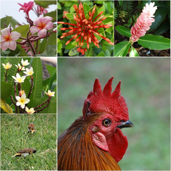 Onderweg zagen we ook mooie bloemen en bomen met exotische vruchten, zoals bananen, mango's en nori.