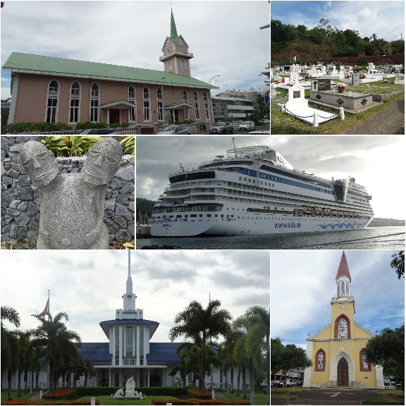 Via het Uranie kerkhof, de protestantse kerk van Paofi langs de oude bungalow van koningin Mãrau (laatste koningin van Tahiti) en de Cathédrale de Pateete Notre-Dame de L'Immaculée, die in 1875 voltooid was.