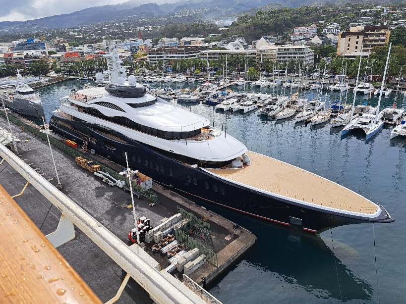 Naast het cruiseschip ligt een hele groot jacht, genaamd 'Launchpad'. Die gaan we ff Googlen natuurlijk. En wat blijkt. Het is het € 278.000.000 kostende privé bootje (in Friesland gebouwd) van niemand minder dan Marc Zuckerberg (ja die van Facebook en zo). Er achter ligt ook zijn serviceboot de 'Wingman', ter waarde van € 30.000.000. Marc zelf hebben we niet gezien.