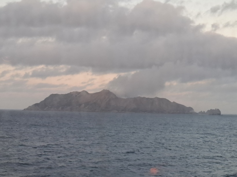 Op weg naar Napier varen we rond 20.00u langs de laatste actieve vulkaan van Nieuw Zeeland; White Island