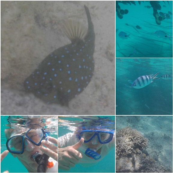 Daar hebben we gesnorkeld vanaf een glass bottom boat en vanaf het strand waarbij we veel vissen en koraal hebben gezien. Sylvia was helemaal in haar nopjes met haar snorkelbril op sterkte. 'Nu kan ik het onder water echt zien, wauw!'