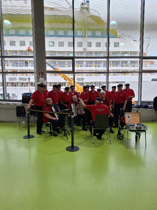 De trossen zijn los. Het avontuur gaat beginnen. De reis naar Hamburg is goed verlopen, we werden welkom geheten door het hamburger mannenkoor.