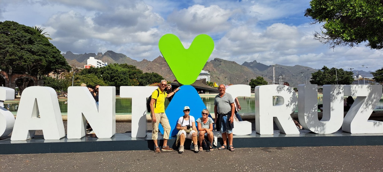 De afstand (vogelvlucht) tussen Breda en Santa Cruz de Tenerife is 3.108 km. Daar hebben we afgesproken met onze vrienden, Charles en Brigitte uit Tilburg, die daar op vakantie zijn. Tja de wereld is een dorp.