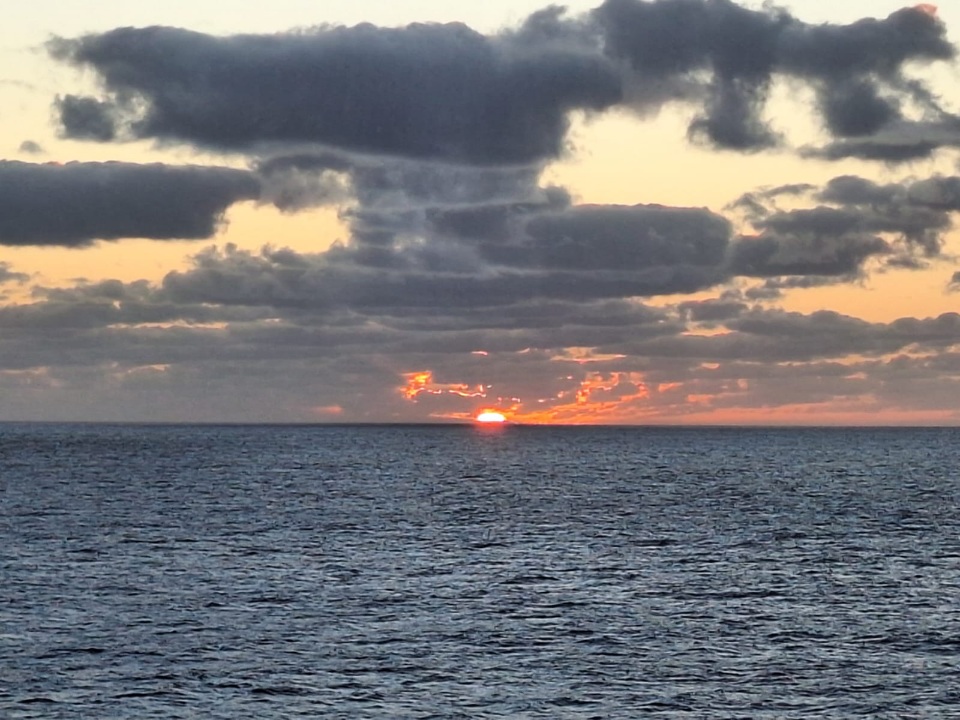 Er was een gast aan boord die naar het ziekenhuis moest. Daarom heeft de kapitein extra gas gegeven en komen we vanavond al om ongeveer 20.00u aan i.p.v. morgenvroeg.