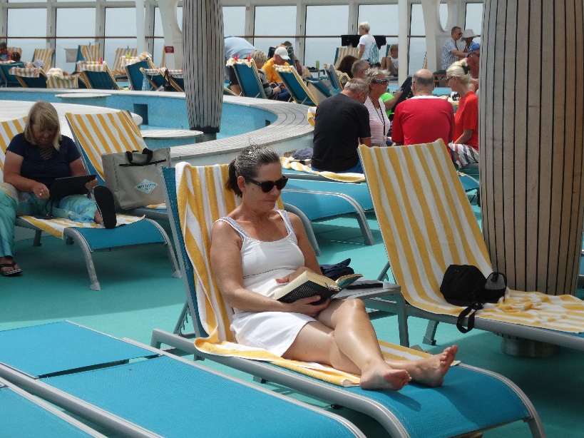 De eerste zeedag verliep zonnig met een kalme zee. We hebben ons prima vermaakt.